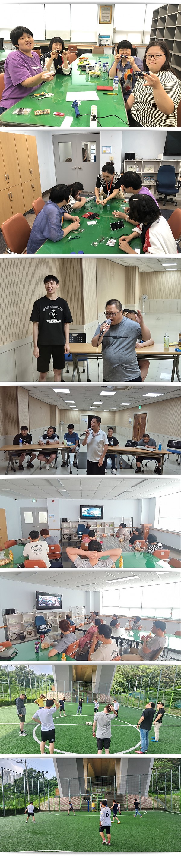 7월 동아리활동 페이지 정보 작성자 관리자 작성일24-08-02 17:20 조회2,462회 댓글0건 이전글 다음글 목록 본문 이번 2회차 이용인 동아리활동(노래연습, 풋살, 공예, 영화관람)에서 즐거운 시간을 보냈습니다. 이전글 다음글 목록