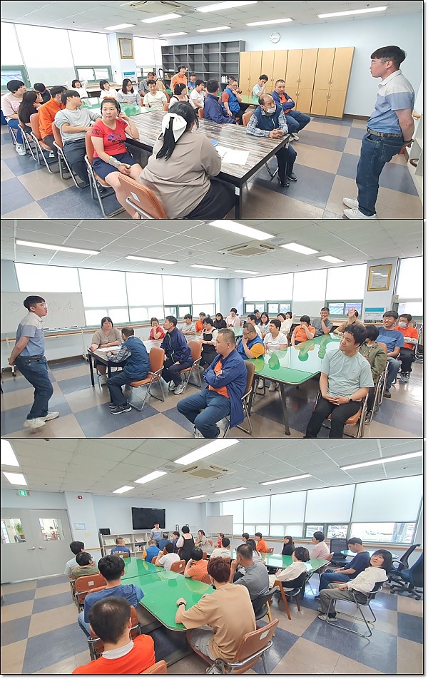 이용인 자조모임 페이지 정보 작성자 관리자 작성일24-06-07 17:05 조회2,979회 댓글0건 이전글 다음글 목록 본문 직장 생활에 있어 고민, 고충이 있으면 자조모임에서 해결해 나가고 있습니다. 먹고 싶은 식단이나 간식도 논의하여 익월에 제공할 수 있도록 하고 있습니다. 이전글 다음글 목록
