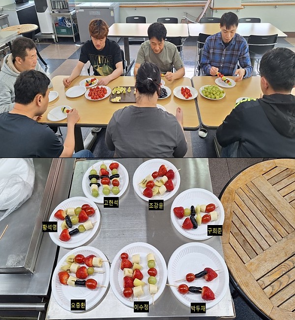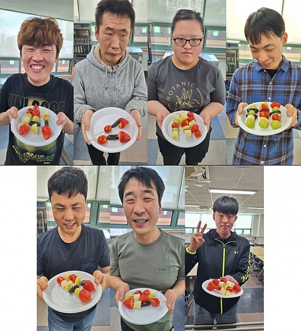 원하는 과일을 골라서 꼬지에 예쁘게 꽂아보았고, 이용인들의 자체 투표에서
