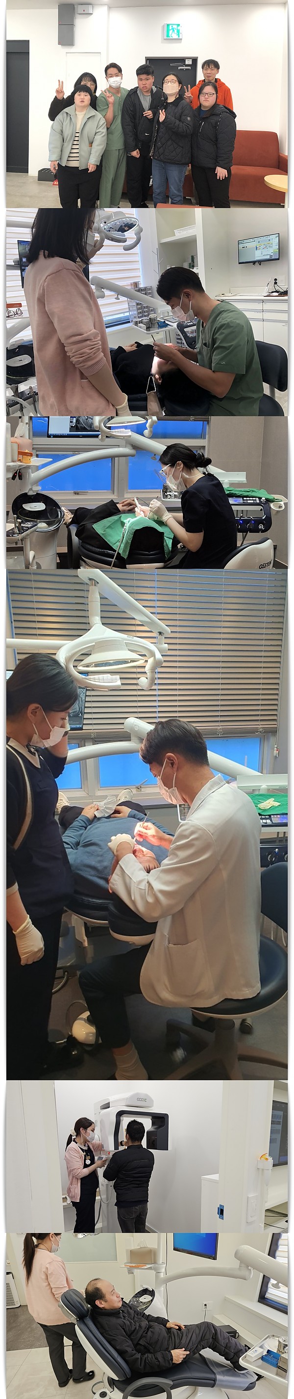 장애인 주치의 지원 사업체 방문(치과검진) 페이지 정보 작성자 관리자 작성일25-04-09 08:57 조회1,096회 댓글0건 이전글 다음글 목록 본문 3월에 장애인 주치의 지원사업으로 서울우리아이치과를 방문하였습니다. 이용인의 잇몸, 치아 상태를 확인하고 대처할 수 있도록 하였습니다. 이전글 다음글 목록