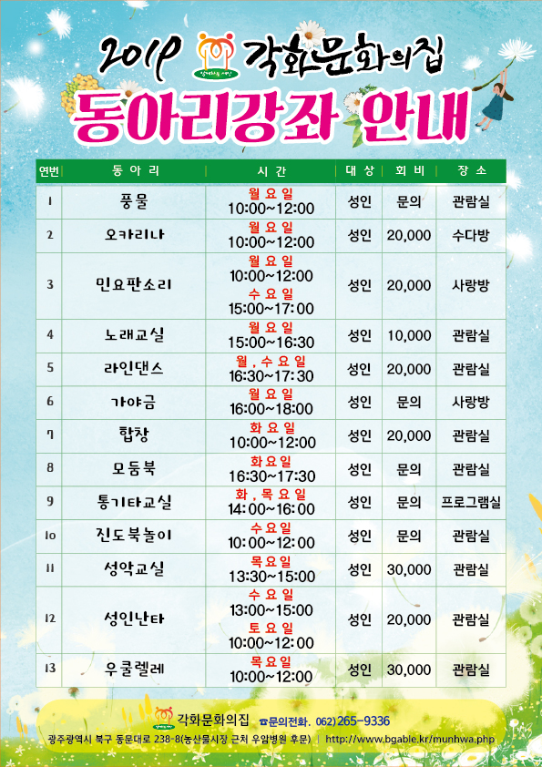 2019 동아리강좌 및 자체프로그램 안내 페이지 정보 작성자 정관용 작성일19-01-21 13:38 조회5,623회 댓글0건 이전글 다음글 목록 본문 2019년도 동아리프로그램 및 자체프로그램 안내합니다. 이전글 다음글 목록