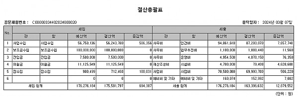 2. 공고사항 : 2022년 각화문화의집 세입·세출 결산