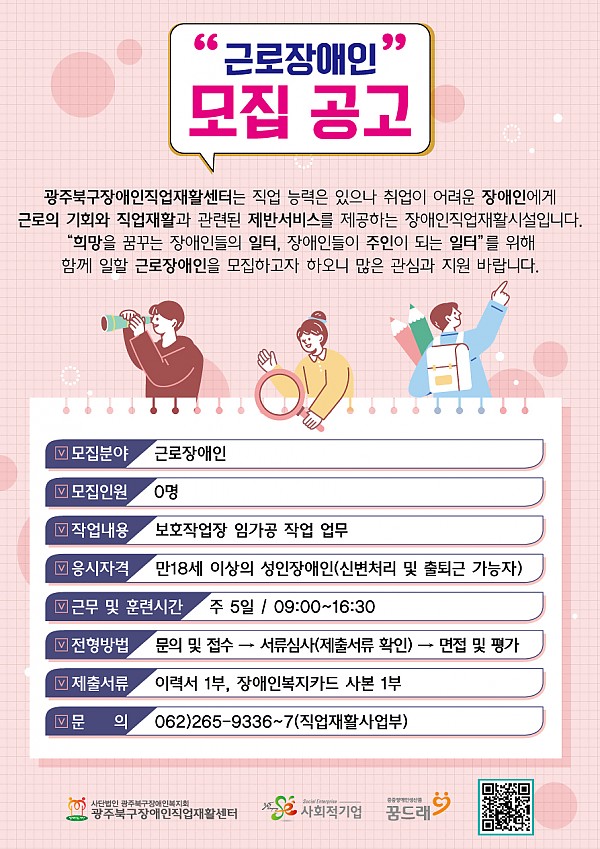 근로장애인 모집 공고 페이지 정보 작성자 관리자 작성일24-05-03 15:33 조회12,578회 댓글0건 이전글 다음글 목록 본문 *미싱 작업 가능자 우대* 광주북구장애인직업재활센터에서 함께 일할 근로장애인을 모집합니다. 많은 관심과 참여 부탁드립니다. 이전글 다음글 목록