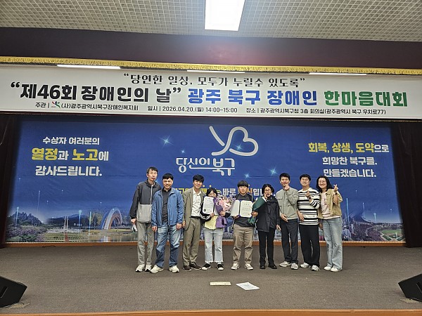 제46회 장애인의날 수상 페이지 정보 작성자 관리자 작성일26-04-20 17:23 조회59회 댓글0건 다음글 목록 본문 제46회 장애인의날을 맞이하여 센터 이용인 두분이 북구청장상, 북구의회의장상을 받으셨습니다. 많은 축하바랍니다. 다음글 목록