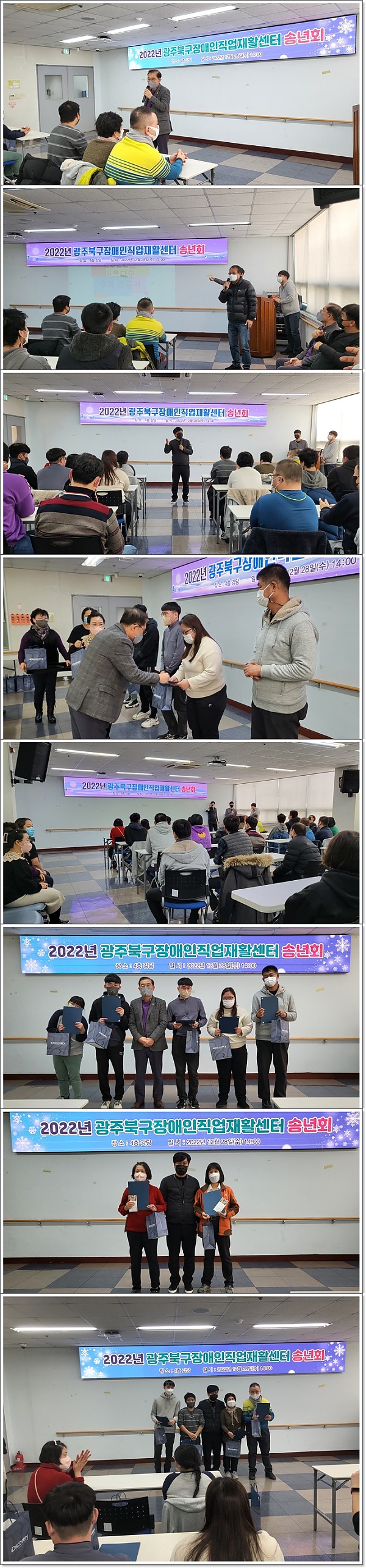 2022년 직업재활센터송년회 페이지 정보 작성자 관리자 작성일23-01-03 13:33 조회4,280회 댓글0건 이전글 다음글 목록 본문 2022년 직업재활송년회를 진행하였습니다. 올해 모두 수고하신 이용인 모두에게 상을 전달하였습니다. 이전글 다음글 목록