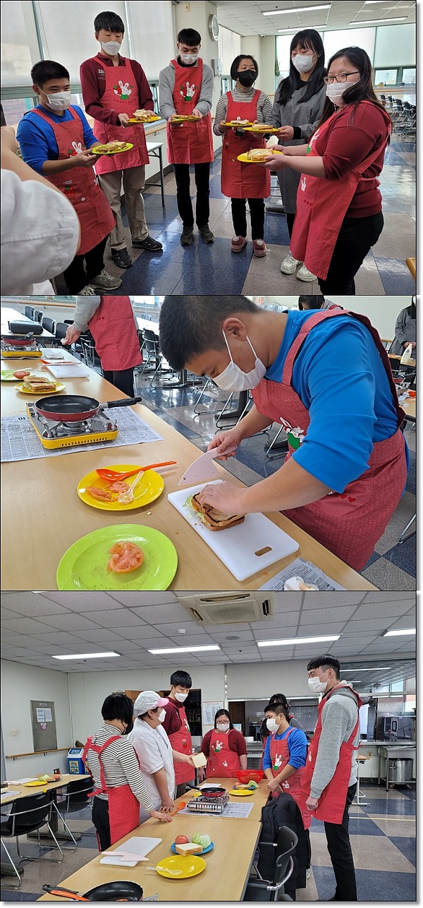 요리 프로그램 페이지 정보 작성자 관리자 작성일22-03-03 16:14 조회4,705회 댓글0건 이전글 다음글 목록 본문 이번 시간에는 샌드위치를 만들어 보았습니다. 요리도 즐겁고 맛도 좋은 시간이 되었습니다. 이전글 다음글 목록
