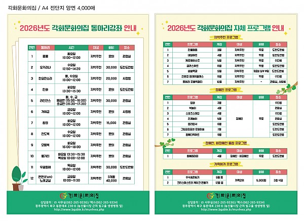 26년도 동아리활동 및 프로그램 안내 페이지 정보 작성자 정관용 작성일26-01-16 17:02 조회804회 댓글0건 이전글 다음글 목록 본문 26년도 동아리 전체 활동 안내 및 프로그램 안내합니다. 이전글 다음글 목록