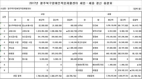 2. 공고사항 : 2017 광주북구장애인직업재활센터 세입·세출 결산