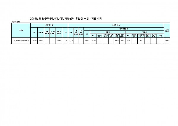 2016년 광주북구장애인직업재활센터 후원금 수입 및 사용내역 페이지 정보 작성자 배지연 작성일17-05-10 09:38 조회15,280회 댓글0건 이전글 다음글 목록 본문 2016년 광주북구장애인직업재활센터 후원금 수입 및 사용내역을 다음과 같이 공고 합니다. 이전글 다음글 목록