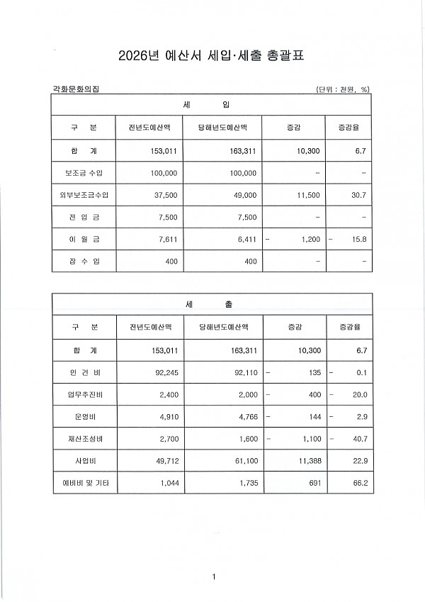 2026 각화문화의집 세입세출 예산서